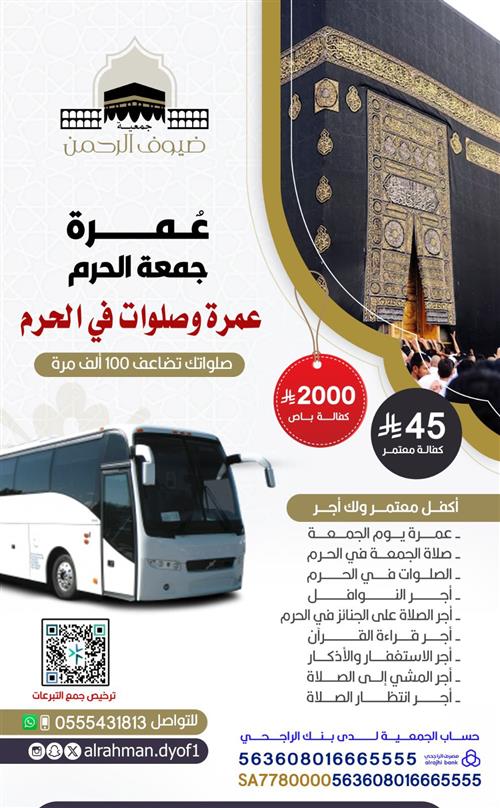 وعلى الجانب الآخر نطمح لمساعدة شركاء الخير والمتبرعين الأفاضل في الفوز بأجر العمرة وما فيها من ثواب جزيل.